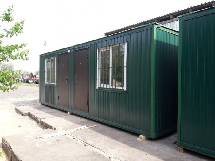Блок модуль контейнеры с размерами 7.0x4.8x2.5 м. Внутренняя отделка выполнена из МДФ, внешняя - Цветной. Бытовка оснащена 3 шт. окнами/окном и дверью. Термоизоляция и гидроизоляция бытовки состоит из: Полиэтиленовая пленка 100 мкм. и KNAUF Insulation Термо 50 мм., что позволяет сохранять приемлемую температуру в помещении. Срок гарантии составляет: 6 мес. Страна производства - .