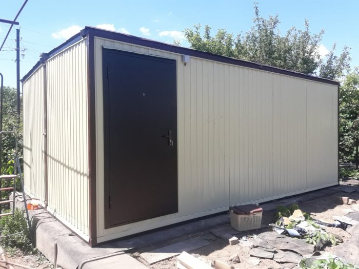 Модульное здание, бежевый профнастил с размерами 6.0x4.8x2.5 м. Внутренняя отделка выполнена из ДВП/ДСП, внешняя - Цветной. Бытовка оснащена 2 шт. окнами/окном и дверью. Термоизоляция и гидроизоляция бытовки состоит из: Полиэтиленовая пленка 100 мкм. и KNAUF Insulation Термо 50 мм., что позволяет сохранять приемлемую температуру в помещении. Срок гарантии составляет: 6 месяцев. Страна производства - Россия.