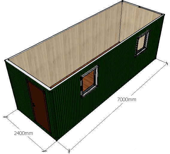 Бытовой вагончик, зеленый профнастил с размерами 7.0x2.4x2.5 м. Внутренняя отделка выполнена из МДФ, внешняя - Цветной. Бытовка оснащена 2 шт. окнами/окном и дверью. Термоизоляция и гидроизоляция бытовки состоит из: Полиэтиленовая пленка 100 мкм. и Минеральная вата KNAUF 50 мм., что позволяет сохранять приемлемую температуру в помещении. Срок гарантии составляет: 6 мес. Страна производства - .